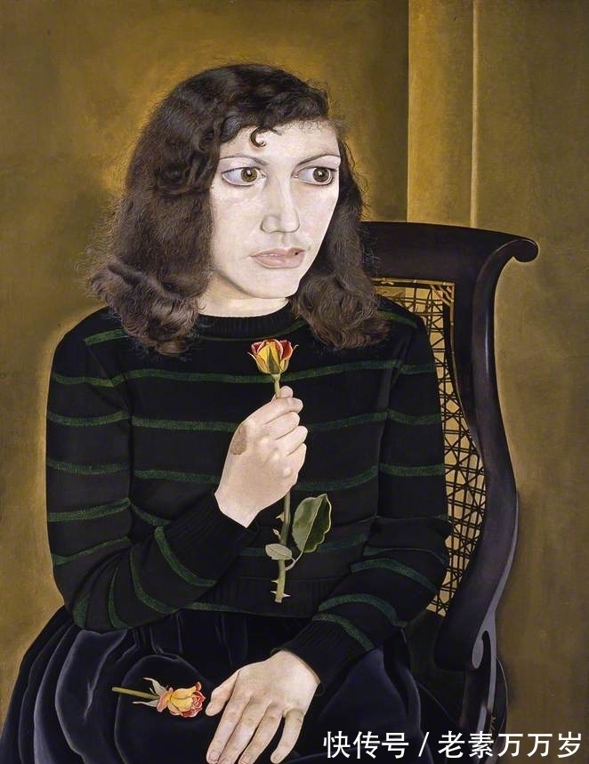 他在20世纪40年代末的肖像画,如《手持玫瑰花的女孩》,将夸张的画风与令人不安的虚幻感觉结合在一起。